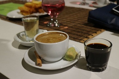 Setelahnya, minum kembali sesendok kopi murni, dan minum kembali sesendok kopi susu yang kali ini sudah diaduk sebelumnya menggunakan batang kayu manis yang tersedia.